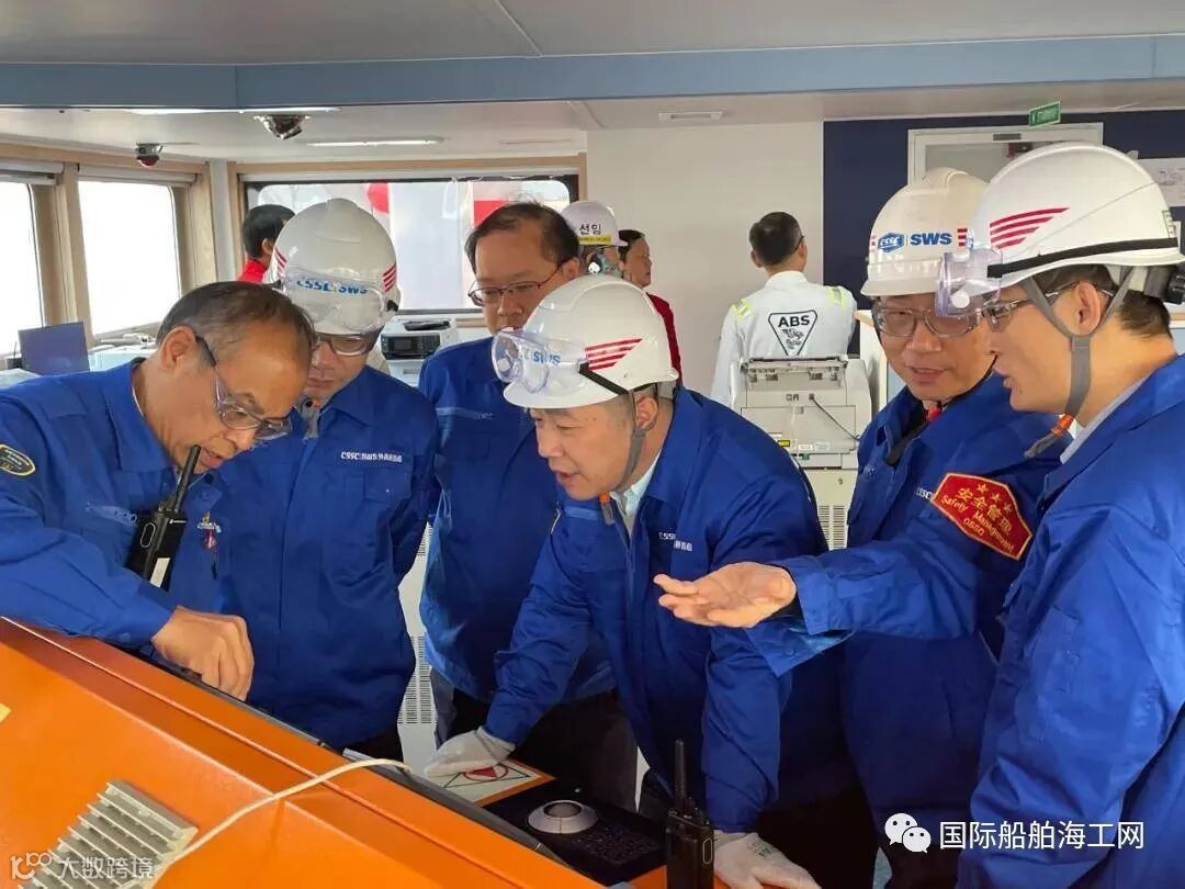 该船系统设备报警调试点有1500个之多,较常规散货船多80%以上,调试报验周期更长。为了满足报验需求,外高桥造船建造团队通过提高设备安装完整性、提前达到调试状态,组织两组调试人员同时开展常规系泊项目和FGSS项目的调试等手段,顺利实现公司首次FGSS供气系统调试和常规项目调试任务“两不耽误”。