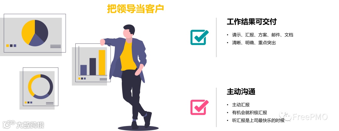 当我们做好了上面大部分内容,对我们的领导有了全面的了解,适应了他的工作模式,自如地展现了我们的专业素养和素质,就会经常发现阳光透过办公室窗户洒在你整洁的桌子边上,你坐在舒适的椅子上,轻轻地调整着你的工作日程。轻松安排时间,将任务分配得井井有条,你会大量减少繁重的返工和加班,因为你准确地预测并满足了领导的期望。在团队会议上,你会经常得到了领导的赞赏和认可,因为你提供的信息、解决方案正是领导需要的。你经常以领导的角度思考问题会让你成为公司中备受瞩目的人,这使你有机会参与更多重要项目和决策,并为你的职业发展打开了更多大门。这种向上管理的能力不仅让你在工作中更加有目的和轻松,也会带给你巨大的职业发展的机会。