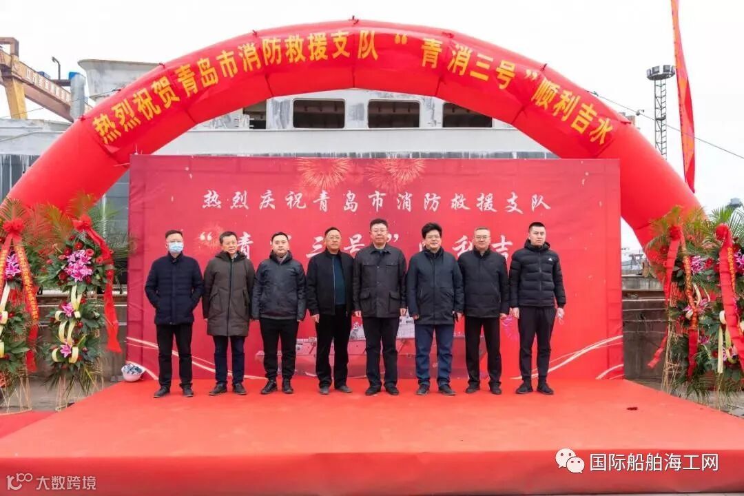 1月21日,青岛消防救援支队1200吨消防船“青消三号”在江苏仪征新扬船舶制造有限公司下水,青岛市消防救援支队姜大宁支队长、于迎春副支队长及仪征经济开发区、CCS江苏分社、仪征海事处、监理公司相关领导出席下水仪式。