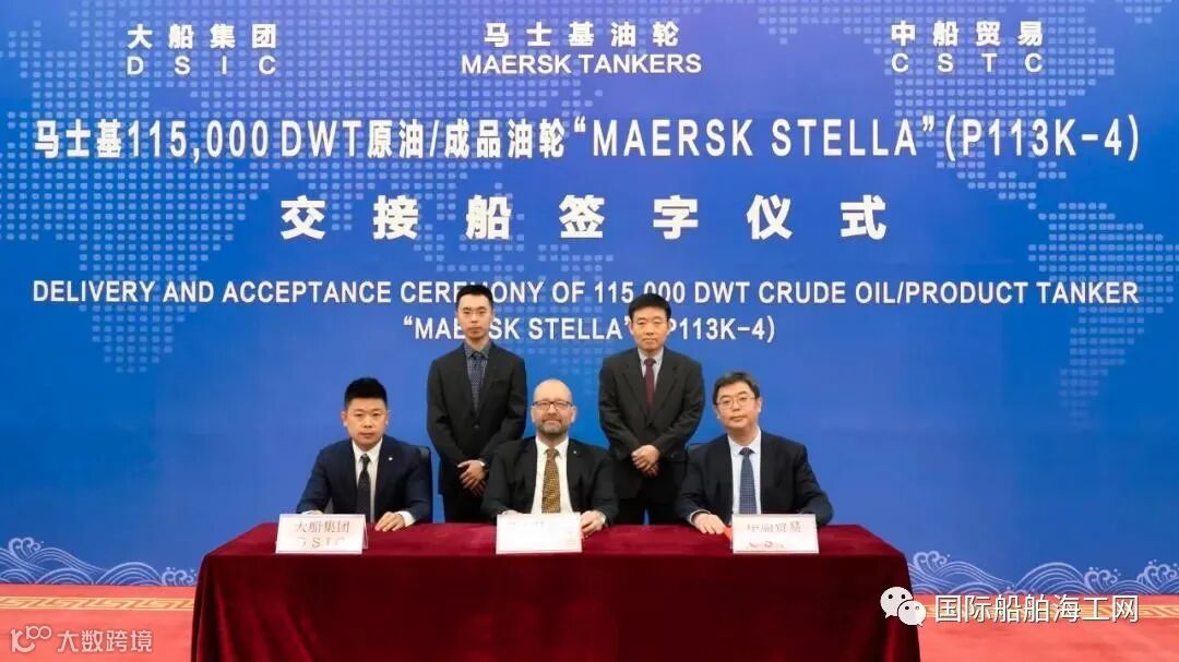 1月7日,大船集团为丹麦马士基油轮公司建造的11.5万吨原油/成品油船“MAERSK STELLA”号成功交付。这是大船集团2022年交付的第一艘船舶。