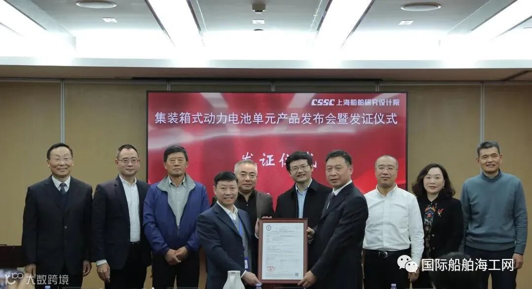 1月6日,由中国船舶上海船舶研究设计院历时三年自主研制的我国首台套集装箱式动力电池单元(S-CUBE, SDARI Containerized Utility Battery modulE)产品发布会暨产品证书发证仪式在上海举行。中国船级社为上船院颁发了国内第一张集装箱式动力电池单元船用产品证书,标志着该装备已完全满足实船装船应用的各种要求,将成为内河航运零碳排放的新利器。