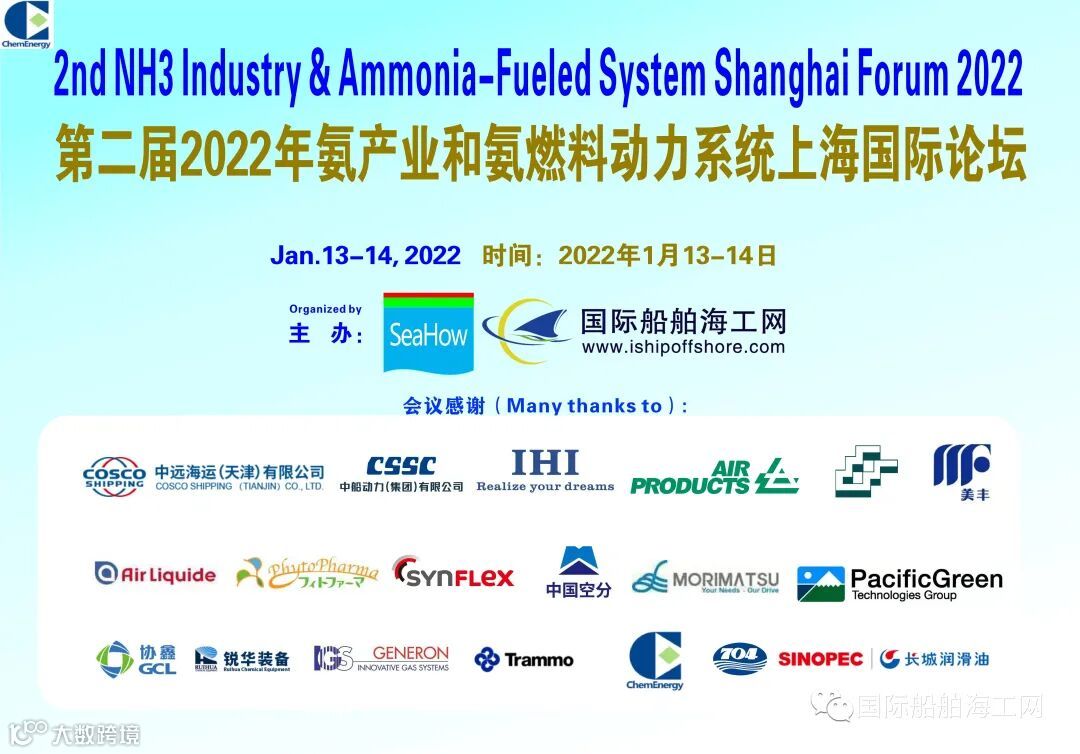 众多国内外著名业主、船东、设备商、新能源、设计、船厂、EPC、金融投资等将出席将于2022年1月13-14日在上海召开的“第二届2022年氨产业和氨燃料动力系统上海国际论坛”,长春建设投资发展集团、协鑫新能源控股、美国空气化工、中国空分工程、湛江米克化能、中石化、中远海运、中船动力、美丰化工、日本石川岛重工、森松重工、北美Pacific Green、德国迅斐利电工、日彬食品科技、日本MOL、NYK、法国达飞、法国液化空气、上海交通大学、厦门大学、上海海事大学、中船708所、上海船舶设计院、中国能源协会、中土科技集团、外高桥造船、广船国际、江南造船、振华重工、招商工业、大连造船、捷能昂科技、东一阀门等中外单位代表将到会议现场交流。咨询报名:china@ishipoffshore.com 或 chinabobli@126.com 会议将进一步广泛邀请国内外单位代表参加,交流、探讨和分享氨产业和氨燃料动力系统在航运、船舶、内燃机、飞机、汽车、市政、电力、工程、港口、物流等行业清洁新能源市场机会发展现状和趋势等。