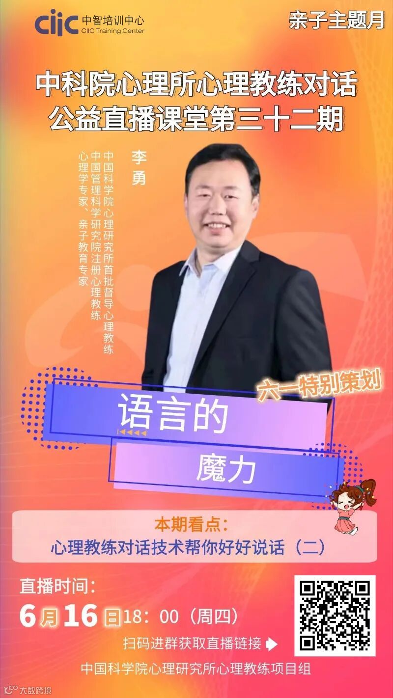 今晚18:00,心理教练对话技术帮你好好说话,心理学专家、亲子教育专家——李勇,为您现场分享!