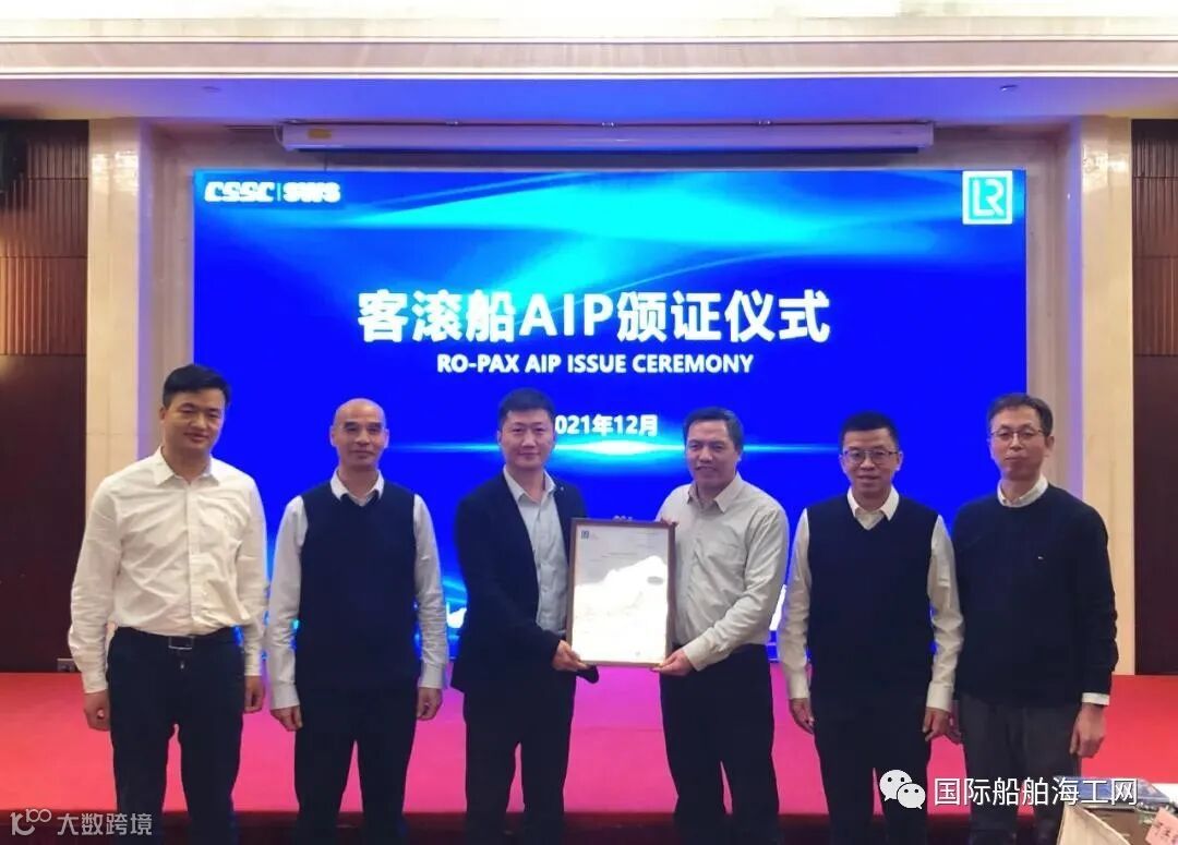 12月21日下午,上海外高桥造船公司与劳氏船级社举行豪华客滚船(Ro-Pax)原则性认可(AIP)授证仪式。公司副总经理周琦、副总工程师郭勇、劳氏大中华区副总裁李天翔、王谷正以及双方技术部门专家等共同见证此次签约。