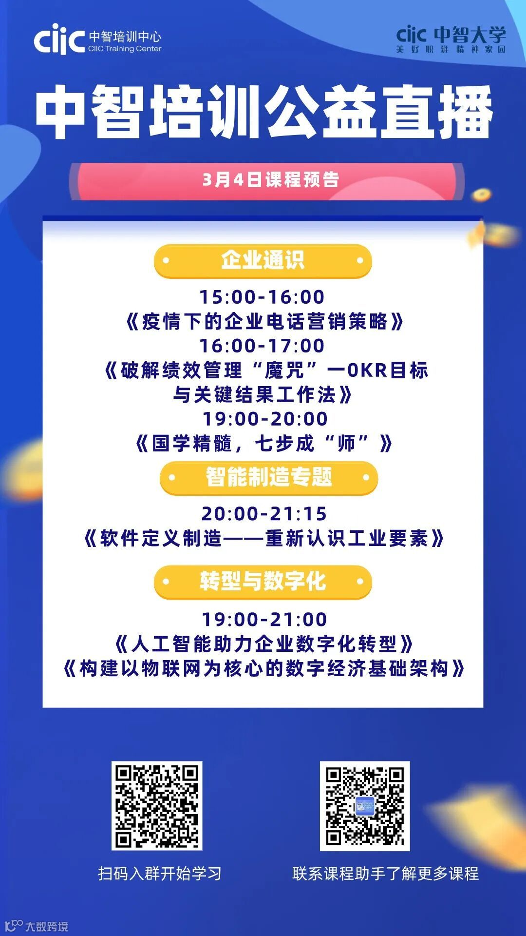 各位爱学习的小伙伴~中智公益直播课堂3月4日的课程预告来了