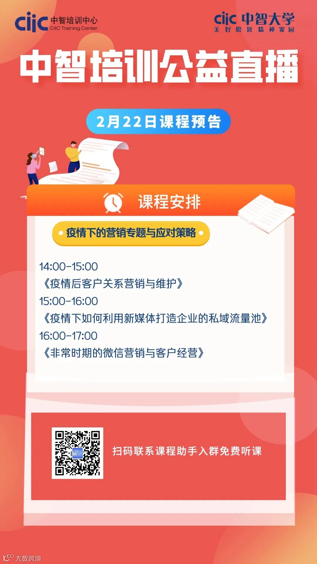 各位爱学习的小伙伴~中智公益直播课堂2月22日的课程预告来了