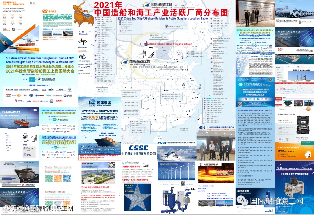 为继续反映中国造船和海洋装备,尤其是造船厂分布更新、新船舶产品、新技术在绿色船舶和海上风电产业的新发展新动态,连续多年来一直免费在国际上发布和赠送中英文版中国造船海工地图的国际船舶海工网高兴地宣布,将于2021年12月6日前继续发布全新版真正风靡全球的珍藏版英文版造船地图“2022 China Top Shipbuilders & Active Suppliers Location Table ”和发布免费赠送的2022年中国造船和海工装备产业活跃厂商分布图(简称造船海工地图),“2021年中国造船和海工产业活跃厂商分布图”中文版已于2021年7月3日成功发布。疫情前,多年来多版全英文版造船地图曾长期在德国、丹麦、美国、挪威、瑞典、新加坡、芬兰、法国、荷兰等海事活跃国家和地区免费赠送,待疫情好转全面恢复后,国际船舶海工网将继续在国内外免费赠送英文版地图。有图有真相如下。