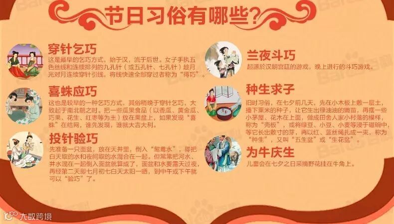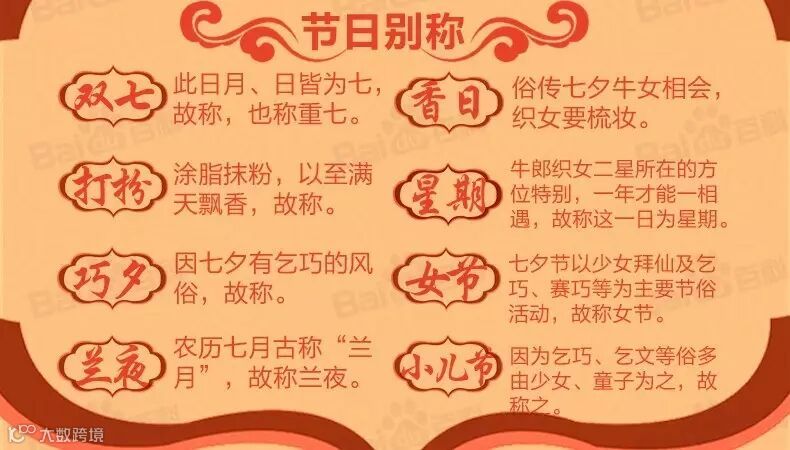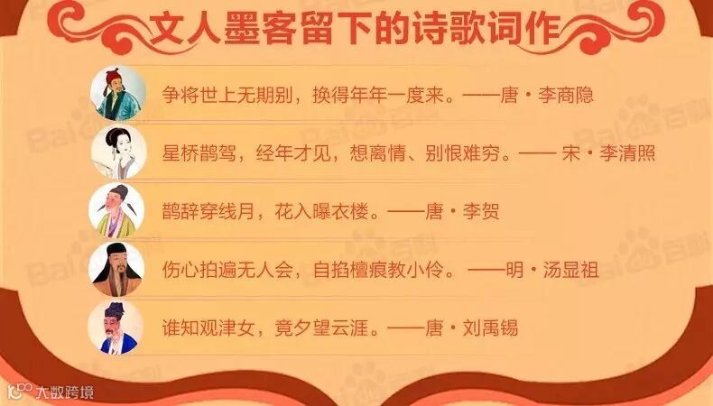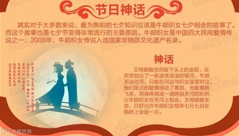 导读:牛郎织女鹊桥相会七夕节七夕节,又名乞巧节、七巧节或七姐诞,发源于中国,其起源于对自然的崇拜及妇女穿针乞巧,后