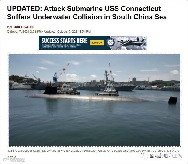 USNI报道截图,图中为7月31日停靠在日本横须贺港的"康涅狄格"号