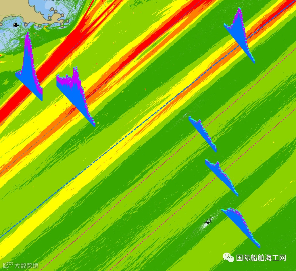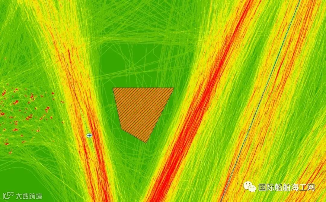 ①福建沿海某海域航迹带分布图(叠加堆叠图)