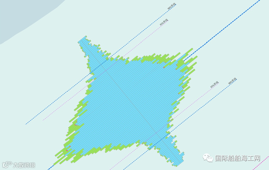 试行版对航迹带分布宽度保证率采用了一刀切的做法,即无论航路离岸距离多远,其保证率均按90%对待。修订版在内航路保证率维持90%不变的基础上,降低了对离岸较远的中航路、外航路保证率的要求,其中对中航路、外航路附近的航迹带分别按85%、80%取值。据测算,中航路航迹带保证率由90%降至85%,其航迹带边界约可内缩300-600m距离;外航路航迹带保证率由90%降至80%,其航迹带边界可内缩500-1200m,这种航迹带边界的内缩不仅意味着在海上交通做到集约、节约、安全用海,也为海上风电开发腾出更多空间。