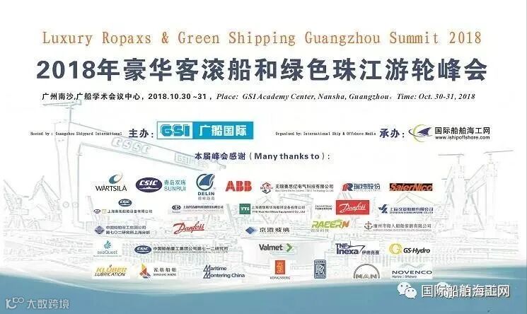2018年金秋10月的30日-31日,在广州南沙召开的、由广船国际主办、国际船舶海工网承办的“2018年豪华客滚船和绿色珠江游轮峰会”成功举办。300多位来自政府相关部门、船东、船舶管理公司、行业协会、中外船舶设计单位、国内外客轮配套厂商、金融机构、大学、新能源公司、以及高校的领导、学者、企业家和专家等集聚一起,共同畅谈当前炙手可热的豪华客滚船、豪华邮轮、绿色航运和客轮市场等行业发展大计。