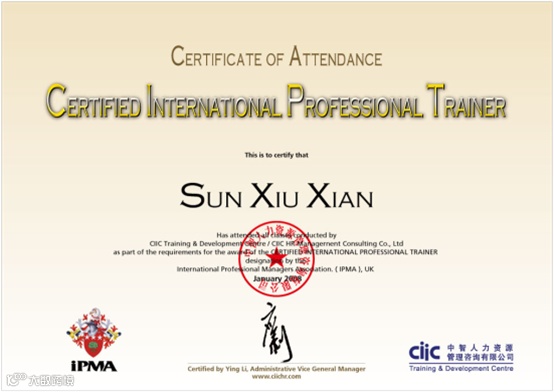 国际职业培训师认证课程(简称CIPMT),由英国国际专业管理公会(IPMA)授权中智公司在中国大陆地区独家代理,是为期一年互动的国际职业培训师认证课程。CIPMT课程在中国大陆地区已连续成功举办12年,分别在上海、北京和大连举办,反响热烈。与其他任何“培训培训讲师(TTT)”课程不同,CIPMT更是一个职业发展指导课程,如果您希望转变职业生涯并从事培训工作,这也将是奠定您良好培训基础的首选渠道。CIPMT在中国培训界已经成为最受企业中高层经理、总经理人群拥戴的品牌项目,它是中国大陆地区独一无二的具有专业培训核心竞争力的国际性认证课程,也是一个在中国培训界颇受好评,特别是外企客户评价最高赞誉的培训职业培训师的课程。
