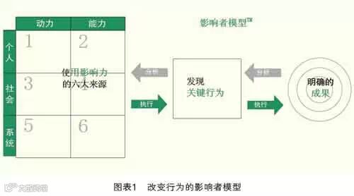 当今世界,信息极其发达,学习者所能够学习的途径很多,员工的平均信息和知识储备基础越来越高。但是,要把学员储存的知识转变为行动非常难。针对人的行为改变,VitalSmarts专门在行为影响力领域有多年的专注研究,发现人的行为改变需要强有力的影响,并总结出了影响者模型(见图表1)。