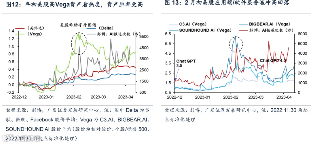 (3)A股AI传播热度与高Vega资产(应用/非核心硬件)节奏一致。