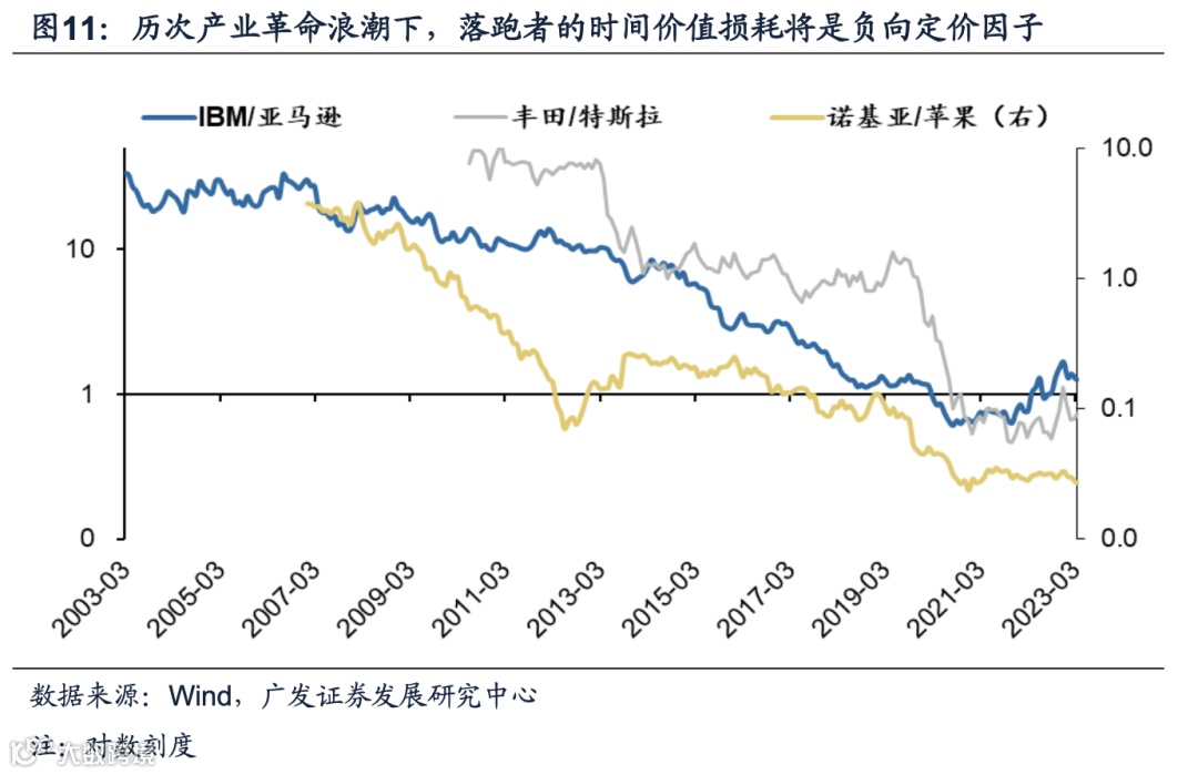 4. 高Theta类资产:时间是敌人——亚马逊vs IBM、苹果vs 诺基亚,特斯拉vs丰田。被革命者的时间价值损耗速度取决于是否存量市场。