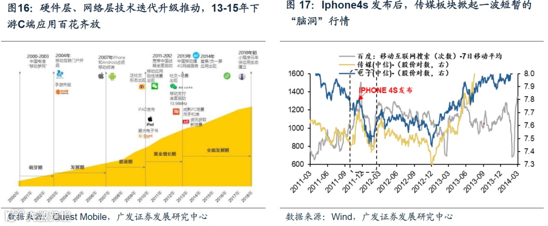 PC时代,84年苹果发布基于GUI的Macintosh,与东芝、惠普、IBM新产品发布贯穿整个PC浪潮,新品发布往往带来股价上涨,但追赶者之间股价此消彼长,鲜有阿尔法。
