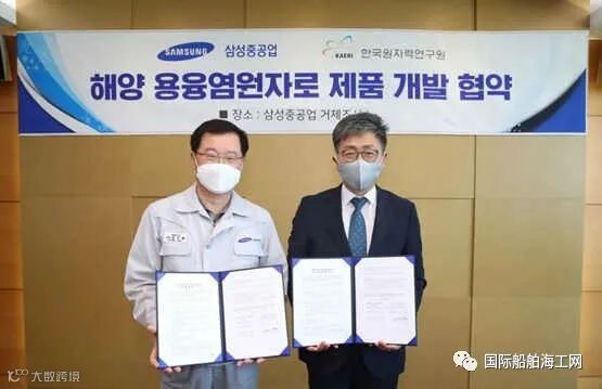 韩联社报道,6月9日,韩国造船巨头三星重工宣布与韩国国家原子能研究院(KAERI)正式签署谅解备忘录协议,双方将联合研发核动力船舶。报道称,三星重工与KAERI将以该型熔盐反应堆为基础,研发设计海洋核动力装备,并在海上浮式核电站、核动力船舶等产品设计、要素技术开发、性能验证、商业模式开发等领域进行深度合作,以提升在零碳能源船舶市场上的竞争力。