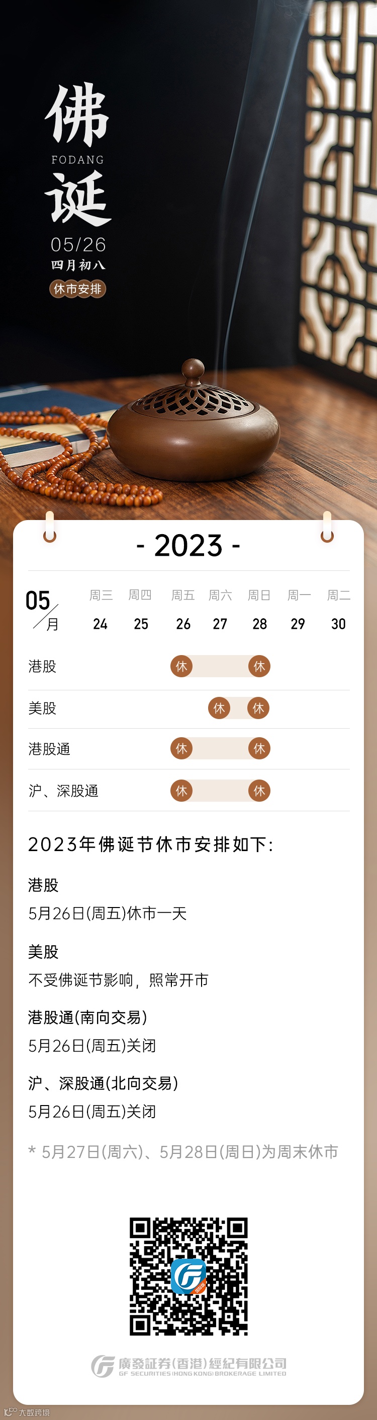 提示 | 5月26日(本週五)港股因佛誕節休市一天