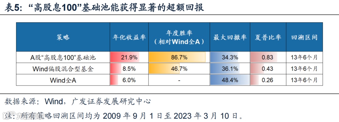 2.“高股息100”是真正的高股息策略,能够实现较高的股息比例。