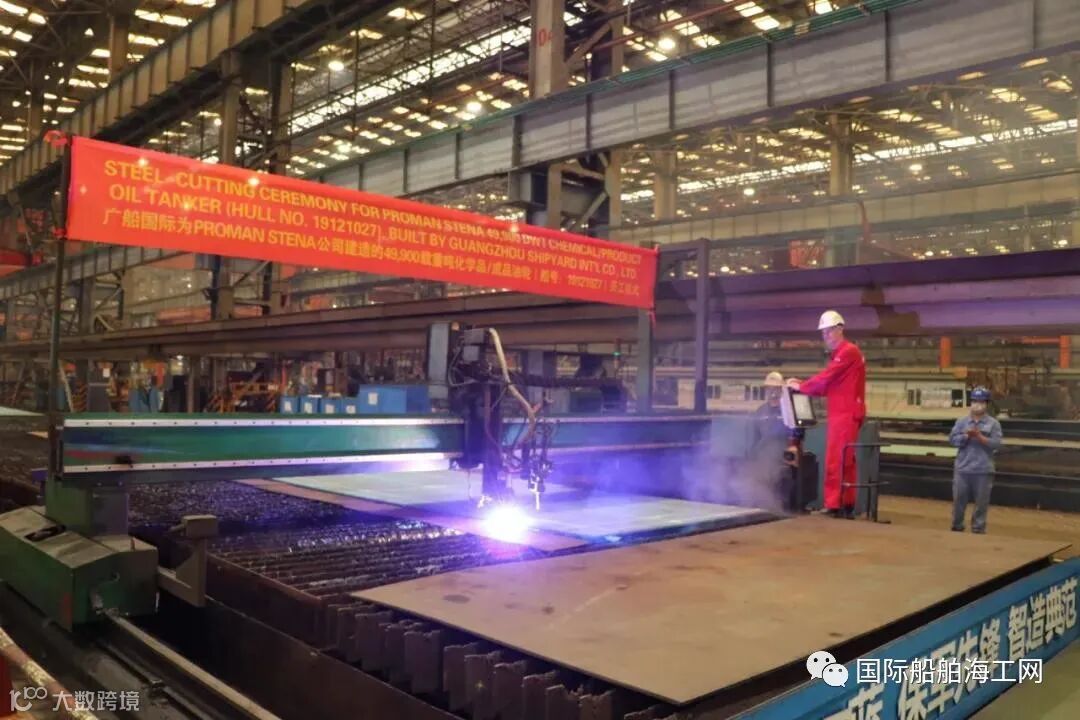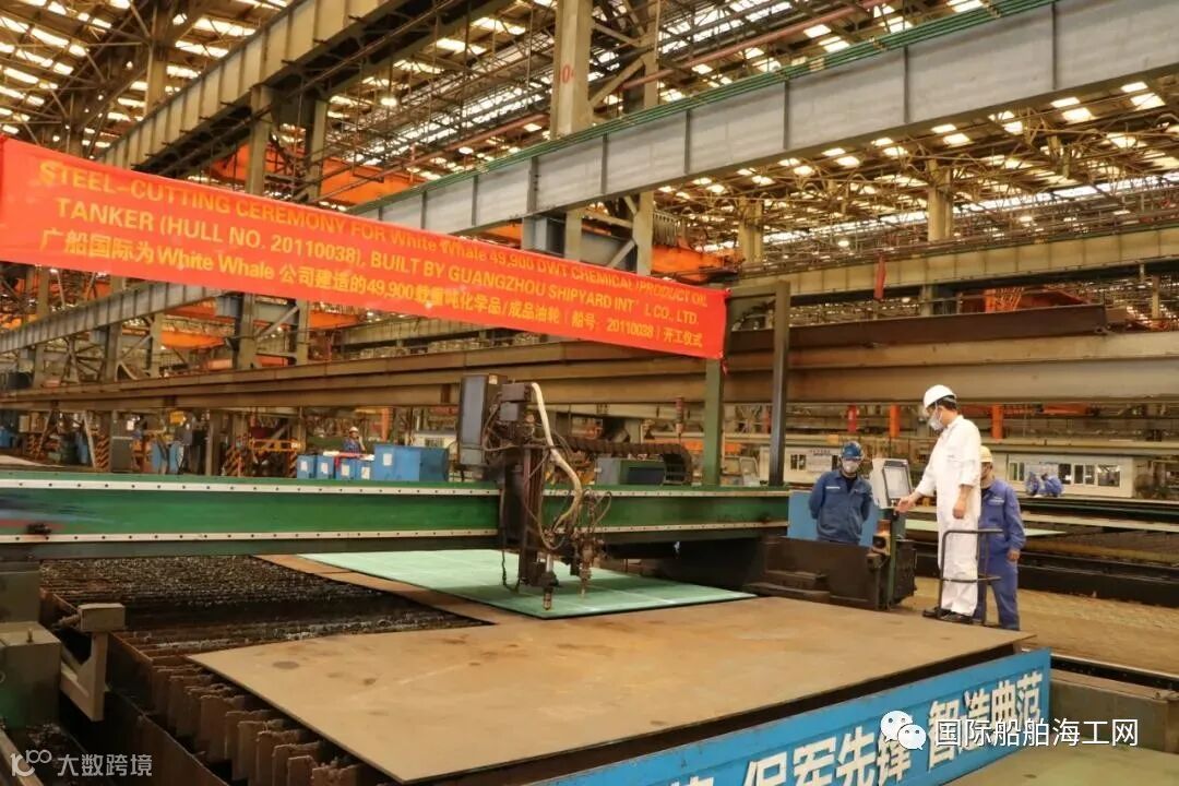 9月1日,中国船舶集团旗下广船国际为White Whale航运公司建造的5万吨化学品成品油轮2号船开工。