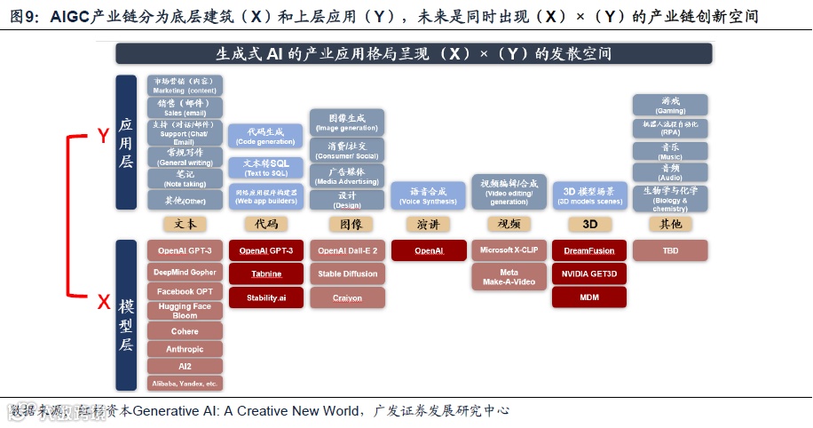 2.1 AIGC产业链联结X(模型)×Y(应用),且都以极大速度革新