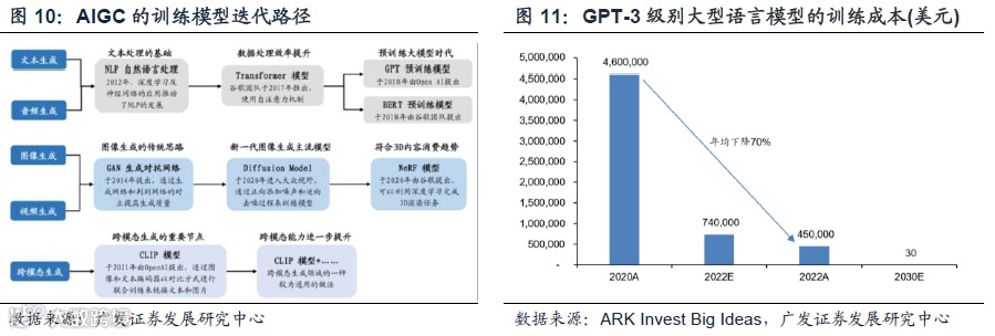 23年投资者对AIGC的直观感受:太快了!与硬件创新速度不同,计算机领域进入到最终个人PC时代的进步花了数十年,iPhone初代手机上市到iphone4爆卖之间也打磨了3年,但我们已经看到了AIGC领域的技术创新速度,主要是来自于模型和算力的能量,当然这也离不开过去10年训练模型不断的衍化和进步。同时大模型成本的快速降低也为技术迭代注入了底层动力。2020年-2022年,GPT-3级别大型语言模型的训练成本年均下降70%。