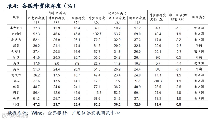 但需注意日本这一特例,日本在这一过程中出现了外贸依存度的下降,这主要是受日美贸易战影响,日本外贸依存度从1981年的27.6%下降到1992年的17.3%,下降10.3个百分点。