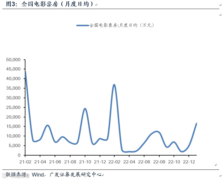 第三,电影票房恢复明显。春节全国票房总收入录得67.63亿元,仅次于2021年同期历史高点的78.42亿;其中中后段的初三至初六票房比重高于历史同期。1月(截至28日)全国单日票房均值1.67亿元,较去年同期增长90.7%,同比2019年增长53.7%。