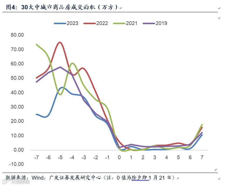 截至1月28日,全国30城商品房成交面积录得28.2万方,同环比分别录得-39.8%、-39.4%。节前最后一周(1月14日-20日)全国商品房成交面积均值29.9万方,2021-2022年同期数据分别为49.5、50.5万方。