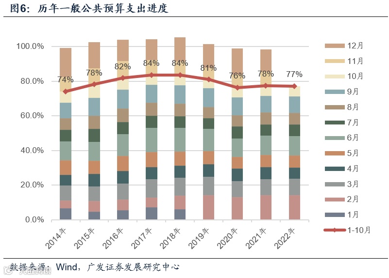 据中证报[2]报道,目前2023年地方债提前批额度已下达,时间较去年更早,一些地区也表示所获提前批额度要多于上一年。我们在前期报告提到对2023年政策的观测指标之一即提前批额度下达的时间和规模,根据目前披露信息来看,2023年财政政策的积极力度大概率不低于今年年初水平。此外,专项债提前批额度的提前也可起到衔接今年专项债、两批政策性金融工具所对应项目的作用,更好地平滑岁末年初这一原本的财政空窗时期,进一步保障明年年初的基建项目尽早开工;换言之,2023年上半年除财政支出节奏有望继续前置外,基建类项目的开工节奏[3]更有望较今年明显前置。