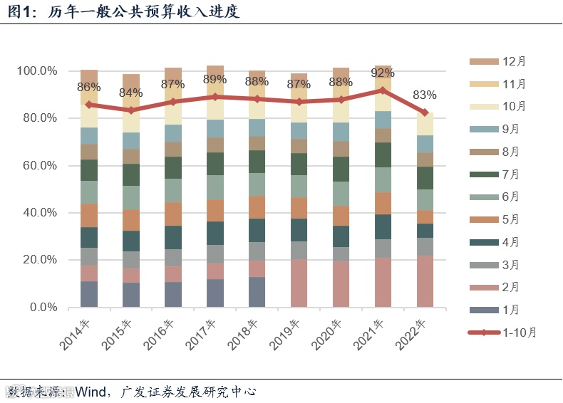 第二,分税种来看,10月四大主要税种中除个人所得税外均表现较好。对于国内增值税和企业所得税,一是9月经济分项部分走高形成支持,二是去年四季度部分制造业中小微企业的缓税政策和经济活动的放缓等形成了企业所得税与国内增值税的低基数,此外自9月来基本结束的留抵退税政策也仍留有影响。对于国内消费税增速大幅提升至147.2%,一是低基数因素,去年10月消费税同比较前期下行26.1个百分点,二是国内消费税主要征收范围为高能耗及高档消费品等,与全国消费数据存在一定口径差异,三是由于消费税年末税额通常较小,近年来四季度消费税同比易呈现增速波动。