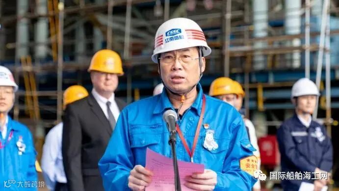 龙应彬在致辞中对B型液货舱的顺利完工表示了热烈祝贺,并向奋战在VLEC项目各条战线上的江南造船员工表示诚挚的感谢!他表示,B型液货舱的研制和实船应用,充分体现了江南造船的科技创新及转化应用能力,这一技术也必将为船东和全球航运业创造更大的市场价值。