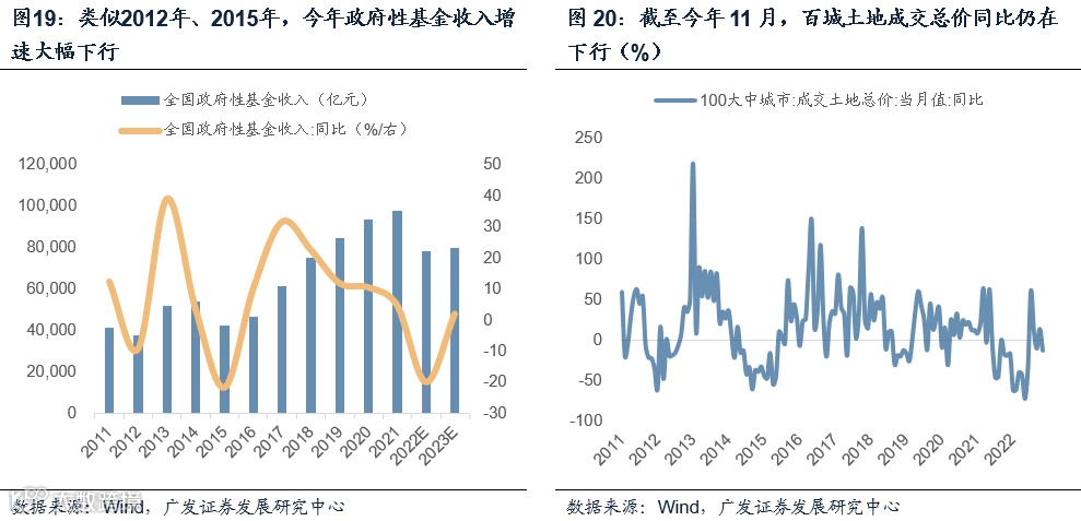 长期来看,首先是从非税收入、广义财政收入等指标看,政策择机打开增长条件亦具有一定必然性。这一点我们在报告《走出谷底:2023年宏观环境展望》中已有分析(图26、图27)。
