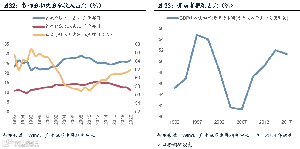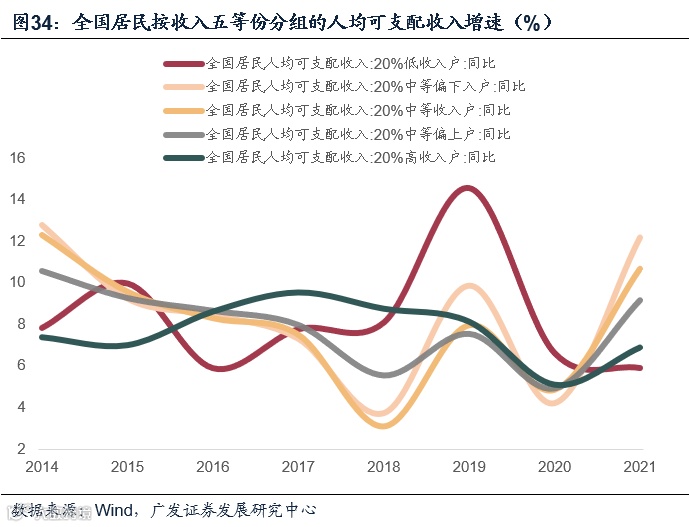 二十大报告在共同富裕部分提到“努力提高居民收入在国民收入分配中的比重,提高劳动报酬在初次分配中的比重”、“增加低收入者收入,扩大中等收入群体”。