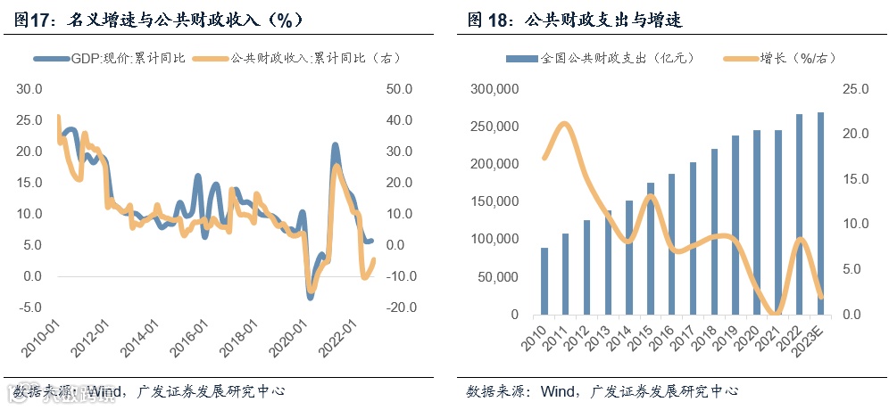 2023年随着名义增长的修复,一般公共预算收入预计也将持续修复。