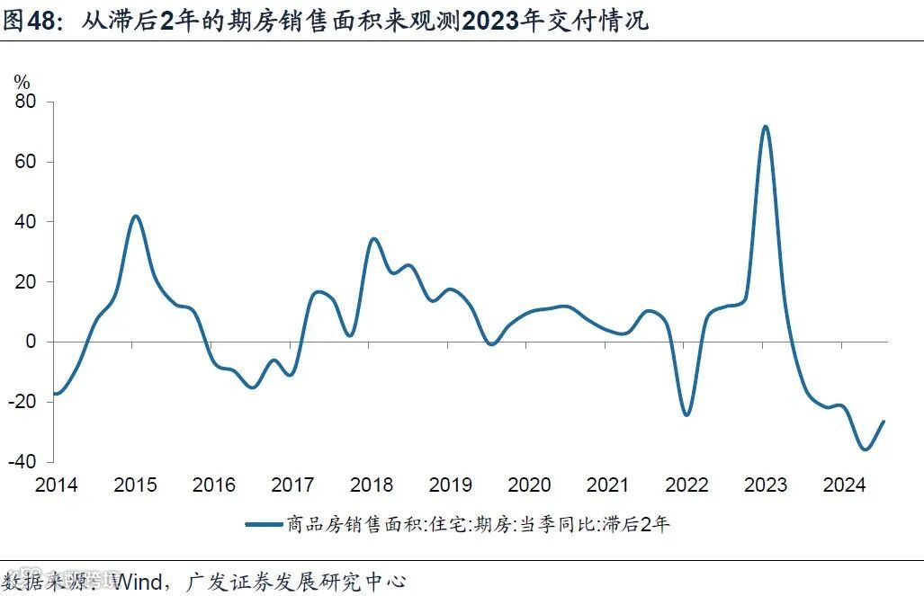 第二重支撑来自于“保交楼”政策支撑下,今年推迟的竣工需求的滞后支撑。