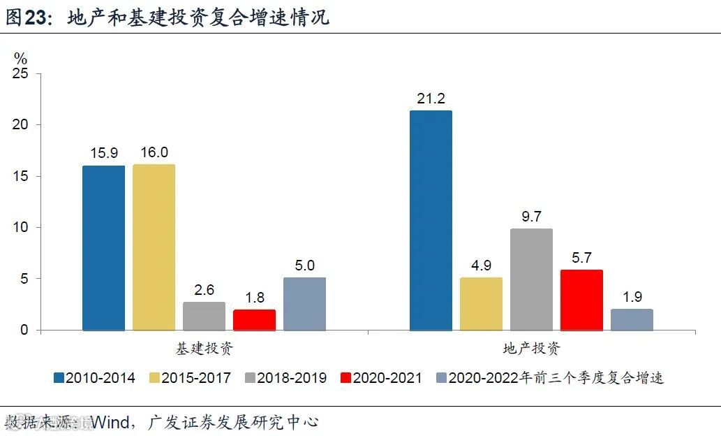 2022年1-10月基建投资累计增速高达11.4%,显著高于2018-2020年3%以内的复合增速;2021年的7.2%、2022年的9.3%。