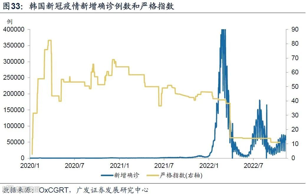 (1)日本自2021年下半年开始才出现疫情管控的持续优化,优化节点滞后于美、韩大概半年左右;