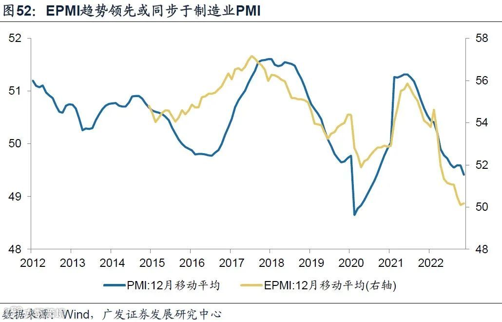 (1)2022年前11个月EPMI均值水平49.8,较2021年54显著下降,持续位于景气收缩区间内。