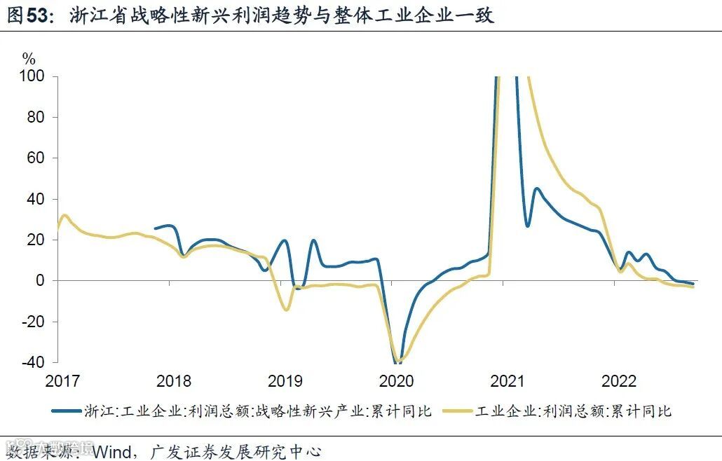 对于新兴产业利润跟踪,我们可以使用这浙江省公布的战略性新兴产业利润总额同比增速,与全国规上工业企业利润类似,这一指标同样在今年前10个月转负。