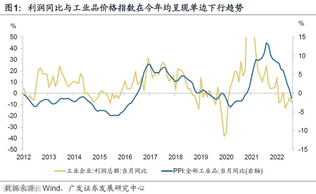 2022年前10个月规上工业企业利润同比下降3%,结束了2020年以来连续两年的正增长。趋势上单边下行,1-3季度利润同比分别为8.5%、-4.6%、-8.7%,与PPI趋势一致。