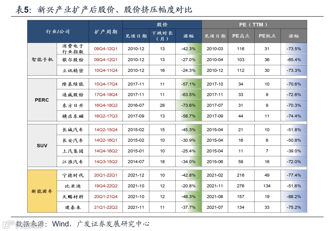 在本篇报告中,我们主要聚焦讨论市场担忧的“新兴产业大幅扩产”,扩产之后的产业趋势、盈利能力变化,和龙头公司的股价表现也非常值得参考——