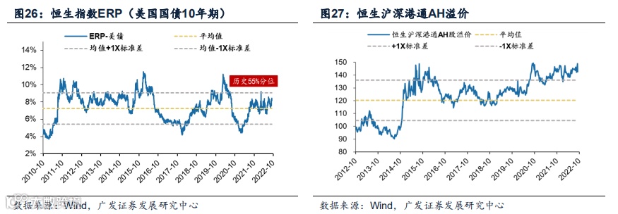 (3)截至10月5日,对标10年期中债和美债利率的恒生指数ERP分别为8.70%、7.84%,分别位于历史97%、55%分位数。恒生沪深港股通AH溢价位于142.7绝对水平,分位数处于历史92.6%分位。