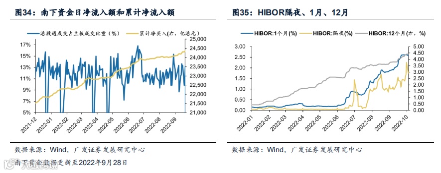 (1)截至9月28日,上周南下资金累计净流入65.88亿港元,成交额占港股成交日均比例为11.43%(根据沪深港三地交易所安排,9月29日至10月7日港股通停止服务)。