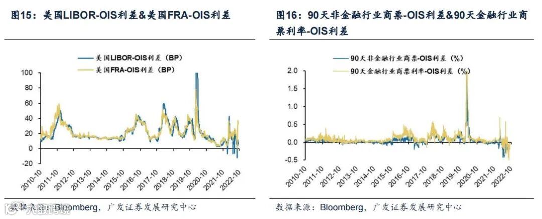 (4)近期美元流动性有所收紧。上周以来美国LIBOR-OIS利差、美国FRA-OIS利差均有所收窄,截至2022年10月04日分别达到5.99BP、32.55BP。90天金融行业商票利率-OIS利差持续震荡,截至2022年10月03日达-0.20%。