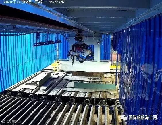 针对公司主力船型小组立手工作业效率低、质量稳定性差、资源占用多等问题,团队在船舶行业首次集成了组立集群上料、工艺自动匹配、基于视觉的机器人焊缝识别与自动焊接等关键技术,研制出公司首条数字化小组立生产线,实现了集装箱船、液化气船等小组立结构的柔性化生产,焊接工艺执行准确率100%,焊接燃弧率提高50%以上。生产线上作业过程数据后台全纪录,实时掌握动态工艺参数、施工进度、质量管控数据等信息,生产过程全程可控,所有组立的制造均基于数字化模型基础上,真正实现了数字化生产。