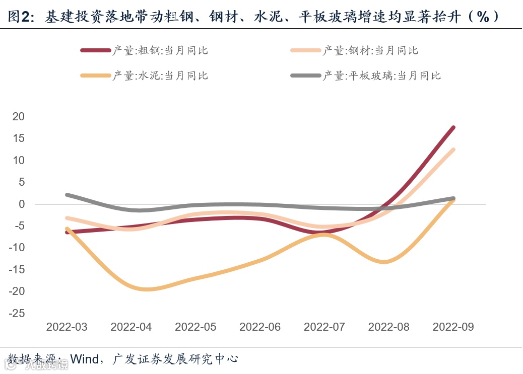 9月工业数据为何明显走高?结合统计局的解释,我们理解主要有三个原因:(1)低基数,去年9月恰好处于限电限产影响下的下半年最低位;(2)高温天气消退,工业用电供给改善,企业存在回补性的生产,特别是最典型的川渝地区由同比负增长变为正增长;(3)基建投资落地带动,粗钢、钢材、水泥、平板玻璃增速均显著抬升;挖掘机开工小时数也有明显变化。