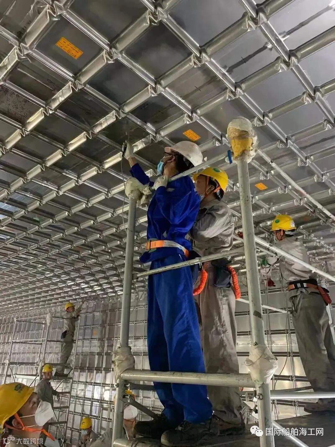 各道工序紧密衔接,管理和技术人员通力协作,遇到问题及时与GTT、船东、船检进行沟通,大家全力确保焊接质量,最终实现MARK III 型围护系统主膜氦气试验首次实现零漏点的佳绩。