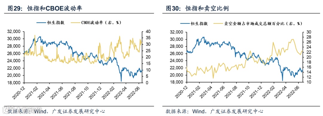 (1)截止6月21日,CBOE波动率报30.19,较上周小幅下降。港股主板卖空比例为22.58%。本周港股日均成交金额、换手率分别为1256.07亿港元、21.26%,环比上周下降。